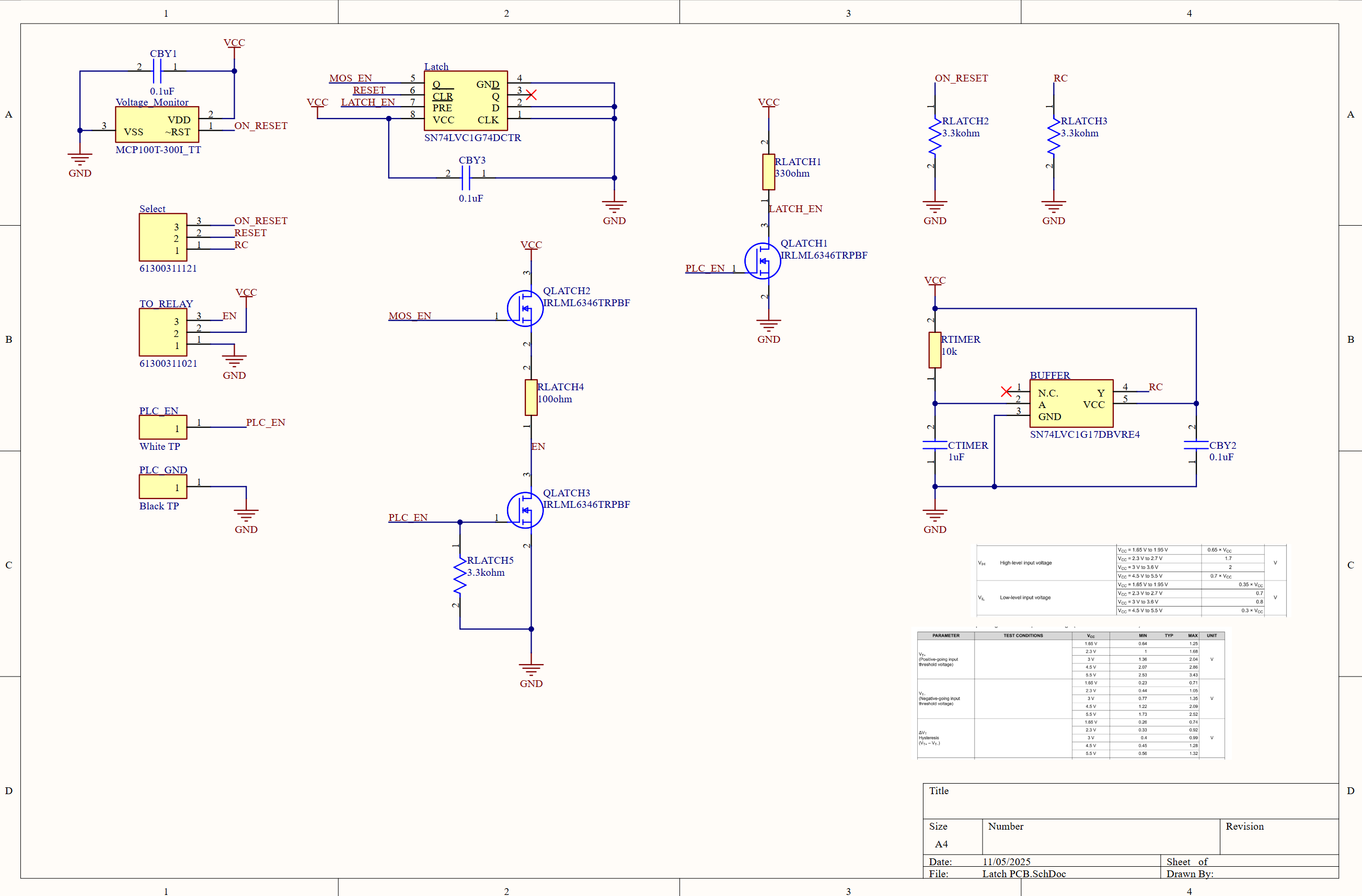 To address this, a separate PCB was designed to implement the latching mechanism while remaining pluggable from the main MOSFET board. This modular design makes the control logic user-customisable, allowing operators to choose between the new latching mechanism or revert to the traditional continuous-signal control logic according to their operational requirements.